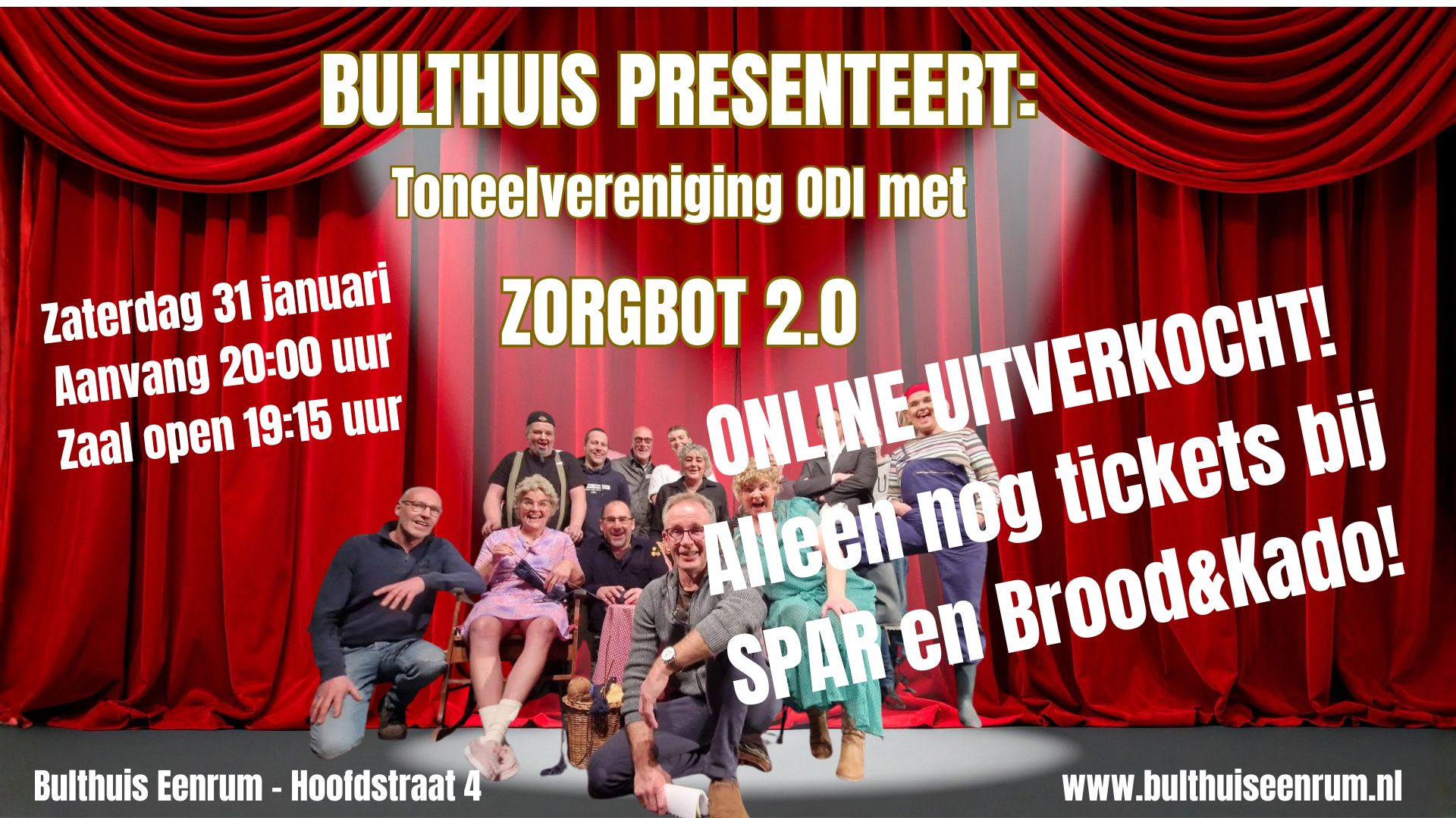 Bulthuis Eenrum Eenrum, Groningen, NetherlandsNa het grote succes van vorig jaar zetten we een nieuwe traditie voort! Op 31 januari speelt Toneelvereniging ODI weer haar jaarlijkse voorstelling in de bovenzaal van Bulthuis Eenrum. Een traplift is aanwezig voor de beentjes die het wat minder […]